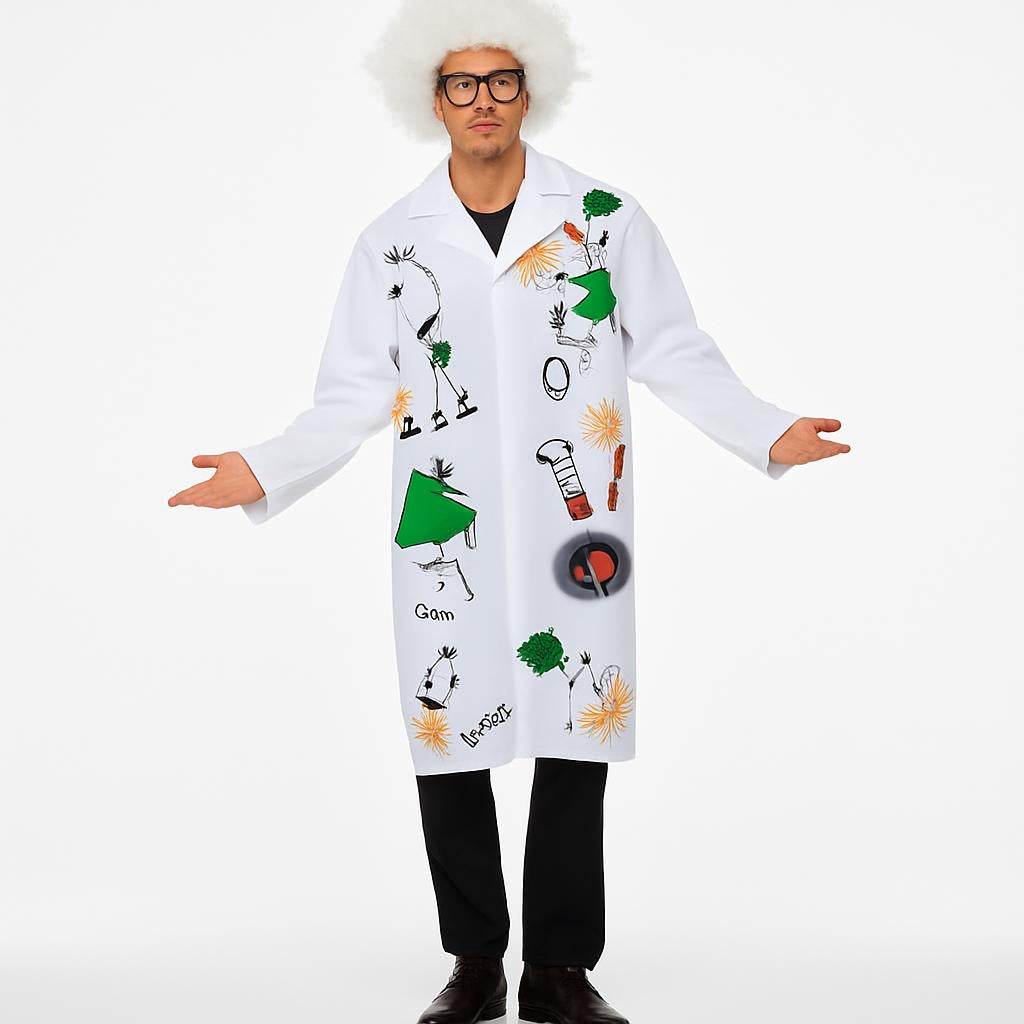 - Includes: White lab coat + wig